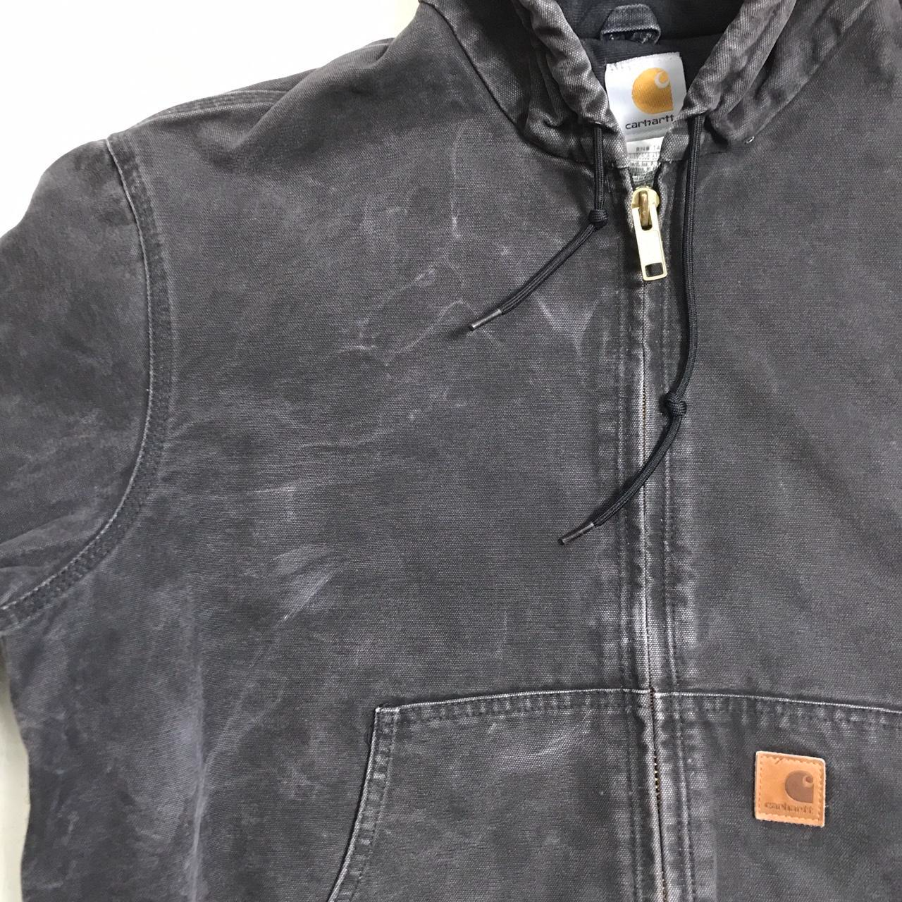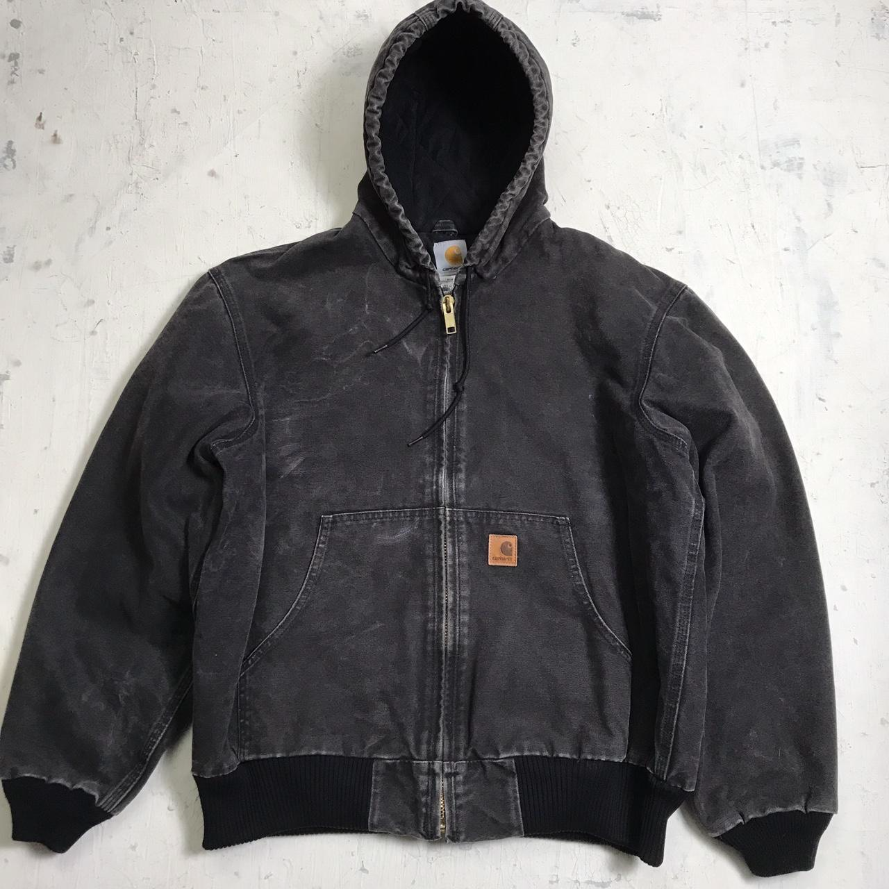 Carhartt coat hooded faded black Large men’s regular 26” pit to pit 28” shoulder to hem 20” pit to cuff end Good condition with no flaws